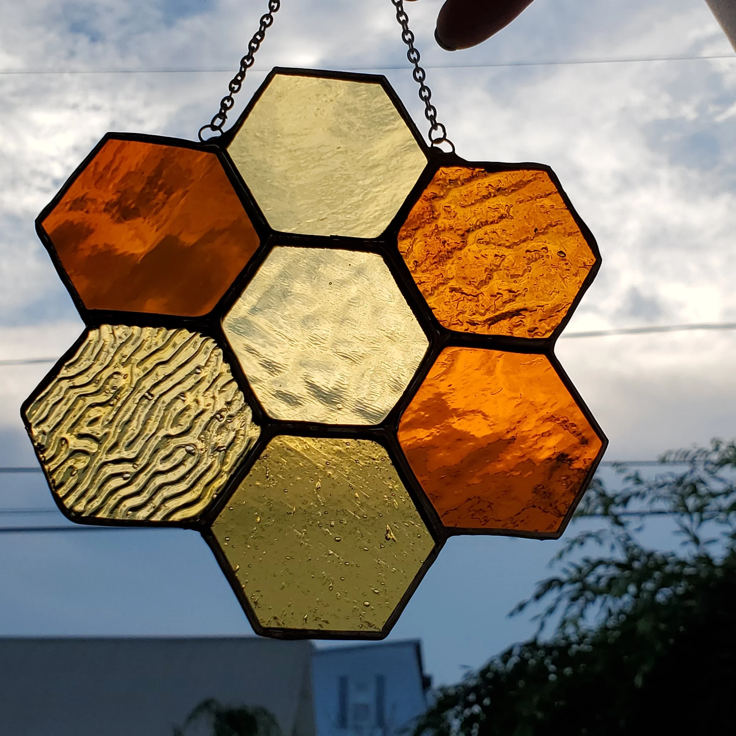 Categories: All Available Work Designs Custom Commissions Available Work Hanging Honeycombs $100.00 Honeycomb with charm $68.00 Honeycomb without charm $65.00 Honeycomb Ornament $30.00 Stained Glass Spiderweb [Style 3] $60.00 Stained Glass Spiderweb [Style 4] $60.00 Large Witches Hat $90.00